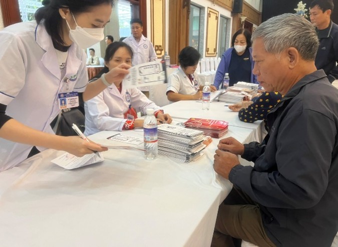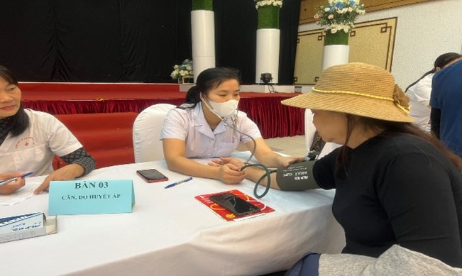 Người dân được cán bộ y tế kiểm tra các chỉ số về sức khỏe
