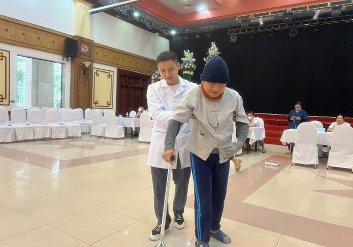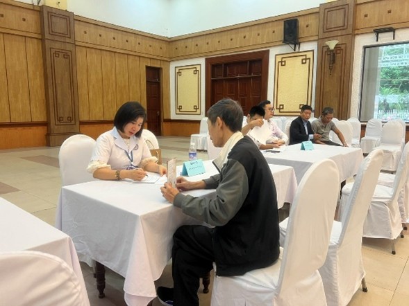 Cán bộ y tế tư vấn và hỗ trợ người dân trong quá trình khám sàng lọc