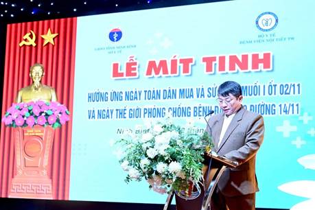 Chương trình mít tinh có có sự tham dự của TS.BS. Phan Hoàng Hiệp – Giám đốc Bệnh viện Nội tiết Trung ương; BSCK1. Đoàn Trọng Thuyết – Giám đốc Bệnh viện Nội tiết Nam Định; Lãnh đạo Cục Phòng bệnh, Trung tâm Truyền thông – GDSK Trung ương; Lãnh đạo các bệnh viện Nội tiết Thanh Hóa, Nghệ An, Sơn La, Lào Cai, Bắc Giang, Quảng Ngãi. Về phía tỉnh Ninh Bình, có sự tham gia của TS.BS Trần Ngọc Minh – Phó Giám đốc Sở y tế; Lãnh đạo Sở Văn hóa và thể thao tỉnh; Lãnh đạo Phường Nam Định, trưởng các phòng y tế, các cơ sở khám chữa bệnh trực thuộc Sở Y tế.