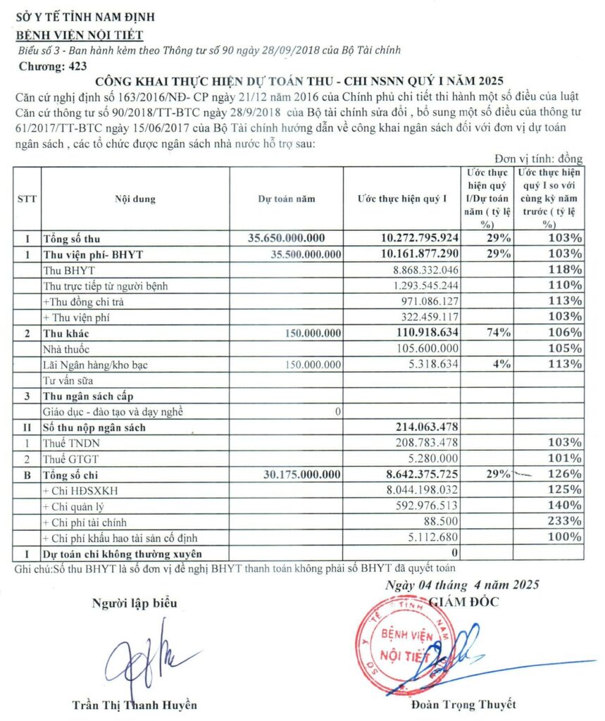 CÔNG KHAI TÀI CHÍNH QUÝ 1 NĂM 2025